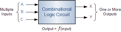 Unlike Sequential Logic Circuits whose outputs are dependant on both their present inputs and their previous output state giving them some form of Memory. The outputs of Combinational Logic Circuits are only determined by the logical function of their current input state, logic “0” or logic “1”, at any given instant in time.