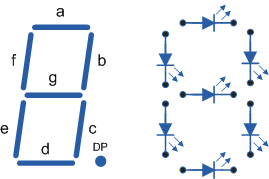 | Individual SegmentsDisplayabcdefg××××××0××1×××××2×××××3××××4×××××5××××××6×××7 | Individual SegmentsDisplayabcdefg×××××××8××××××9××××××A×××××b××××C×××××d×××××E××××F |