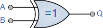 | Boolean Expression Q = A ⊕ B | A OR B but NOT BOTH gives Q | ||
