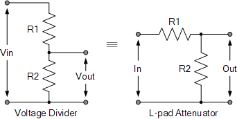 its basic form, the L-pad Attenuator is nothing more than a very simple voltage divider network used in many electrical and electronic circuits to generate a lower voltage.