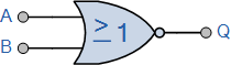Boolean Expression Q = A+BRead as A OR B gives NOT Q