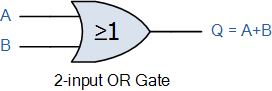 The logic or Boolean expression given for a logic OR gate is that for Logical Addition which is denoted by a plus sign, (+). Thus a 2-input (A B) Logic OR Gate has an output term represented by the Boolean expression of: A+B = Q.