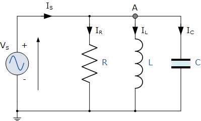 In the above parallel RLC circuit, we can see that the supply voltage, VS is common to all three components whilst the supply current IS consists of three parts. The current flowing through the resistor, IR, the current flowing through the inductor, IL and the current through the capacitor, IC.