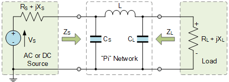 This Pi-pad Matching Network is another simple impedance matching circuit which gets its name from the fact that its circuit configuration is shaped like the Greek letter Pi, (Π). Pi-pad networks are passive attenuator networks which can also be used when the source/load impedances are equal.
