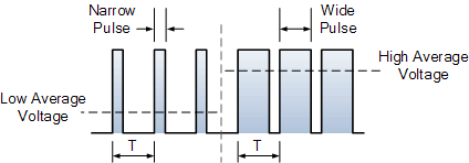 As its name suggests, pulse width modulation speed control works by driving the motor with a series of “ON-OFF” pulses and varying the duty cycle, the fraction of time that the output voltage is “ON” compared to when it is “OFF”, of the pulses while keeping the frequency constant.