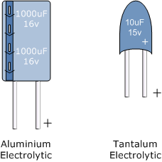 Electrolytic Capacitors are generally used in DC power supply circuits due to their large capacitance’s and small size to help reduce the ripple voltage or for coupling and decoupling applications. One main disadvantage of electrolytic capacitors is their relatively low voltage rating and due to the polarisation of electrolytic capacitors, it follows then that they must not be used on AC supplies. Electrolytic’s generally come in two basic forms; Aluminium Electrolytic Capacitors and Tantalum Electrolytic Capacitors.